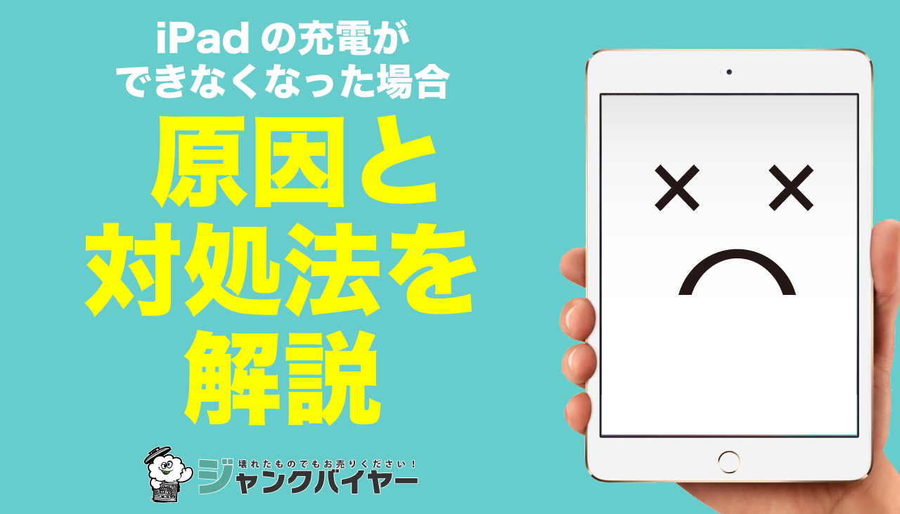 - iPadが充電できない原因は「ケーブルの不良」「ポートの汚れ」「バッテリー劣化」「基板故障」などさまざま。
